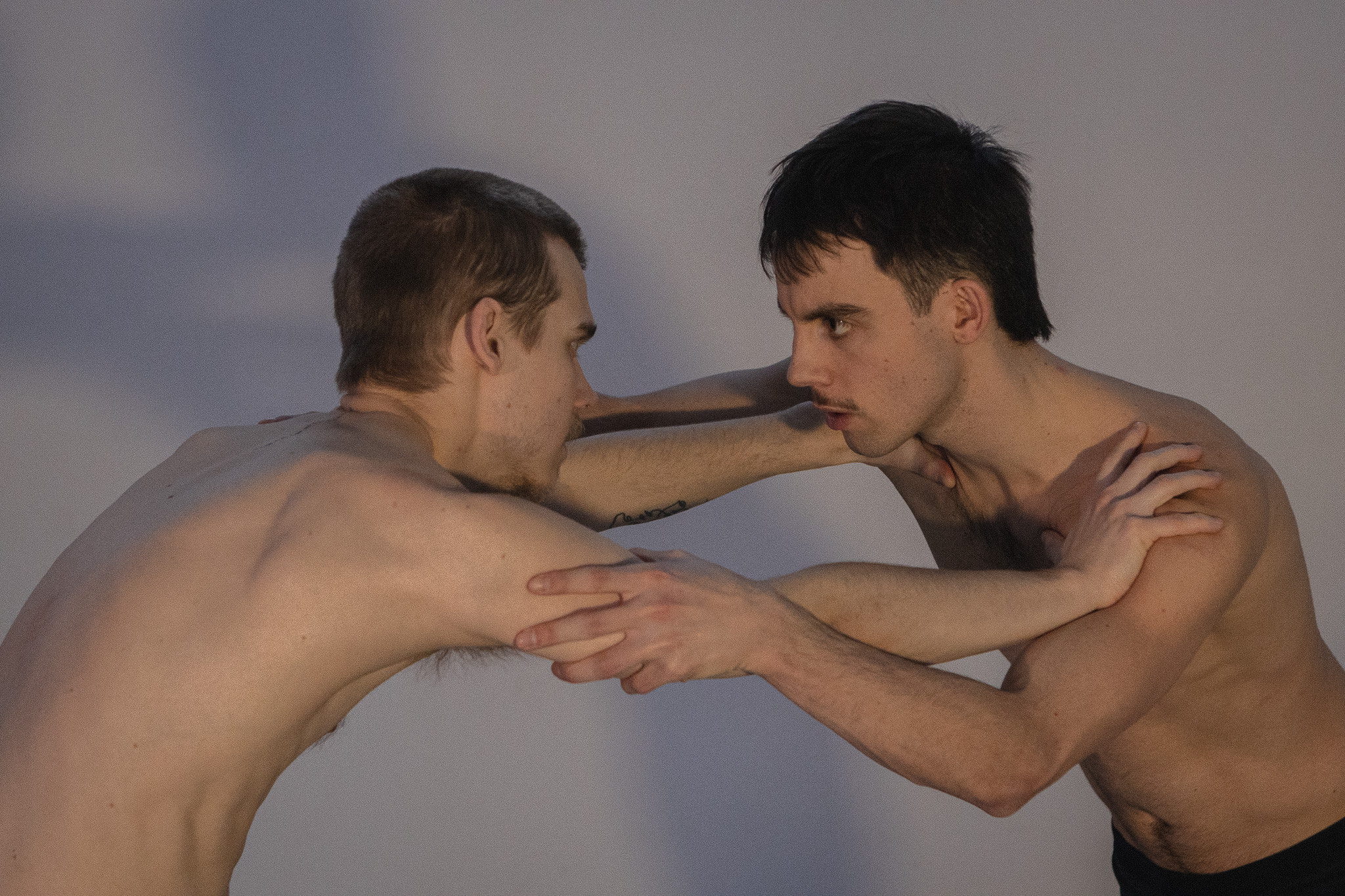 Predstava s počasnim in postopnim odpiranjem drugemu človeku spregovori o naklonjenosti in nežnosti med moškima, prehajanje med ritualom borbe, plesa in predaje drug drugemu pa se bere kot samospoznavanje obeh plesalcev, ki si sprva ne pustita blizu. S tem dekonstruirata lastno maskulino socializacijo, kjer se o emocijah ne govori, še manj pa se jih izkazuje, ob koncu pa se ji upreta in s tem najdeta pot tako do drugega kot tudi do sebe. /.../ Čeprav je moško telo ključno za branje predstave, saj plesalca v njunem tihem spoznavanju naklonjenosti določa spol oziroma njuna socializacija, pa predstava razpira tudi splošnješo interpretacijo, ki govori o tem, kako si pustiti, da ti v vse bolj individualiziranem svetu človek stopi blizu, predlaga sodelovanje in ti spremeni vsakdanjik s tem, ko te pristno navduši in povabi k igri.